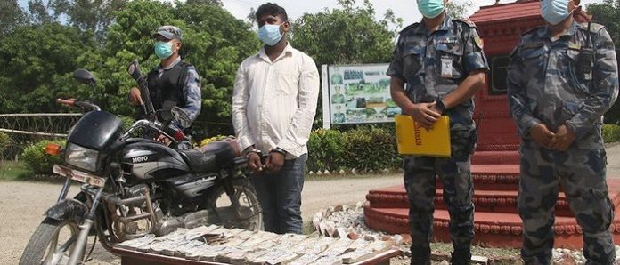 सिमापारी भारतबाट नेपाल प्रवेश गरेका एक युवकलाई चेकजाँच गर्दा साढे २८ लाख नेपाली नोट सहित सशस्त्र प्रहरीले विहिवार विहान पक्राउ गरेको छ । सशस्त्र प्रहरीको ११ नम्वर गणलाई विशेष सुचना प्राप्त भएपछि रौतहटको इशनाथ नगरपालिकाको वडा नम्वर ९ नेपाल भारत सिमा क्षेत्र लवतना भन्ने स्थानमा लुकेर बसेका सशस्त्र प्रहरीले सुचनाको आधारमा आज विहान ७.१५ बजेको समयमा आएका ति युवकलाई निन्त्रणमा लिई चेकजाँच गर्दा श्रोत नखुलेको २८ लाख ५१ हजार ९ सय ६० रुपैंया बरामद गरिएको हो ।