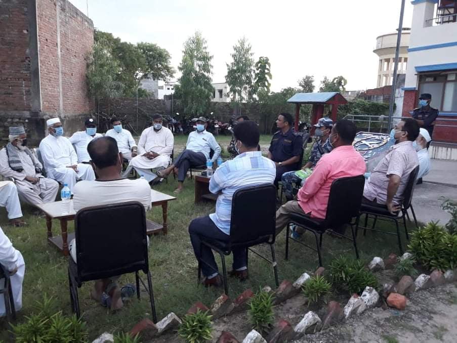 कृष्णनगर, १२ भाद्र । कपिलवस्तु को कृष्णनगर नगरपालिका का स्थानीय मुस्लिम अगुवाहरु लाई ईलाका प्रहरी कार्यालय कृष्णनगरमा यहि भाद्र महिनामा पर्न गएको मोहर्रम पर्व संबंधित समाजिक दूरी कायम गरि छलफल सम्पन्न गरिएको छ।