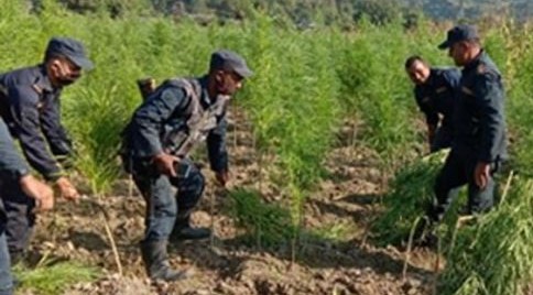 जिल्ला प्रहरी कार्यालय बारा, इलाका प्रहरी कार्यालय निजगढको टोलीले दुई दिनदेखि गाँजा नष्ट गरिरहेको छ ।