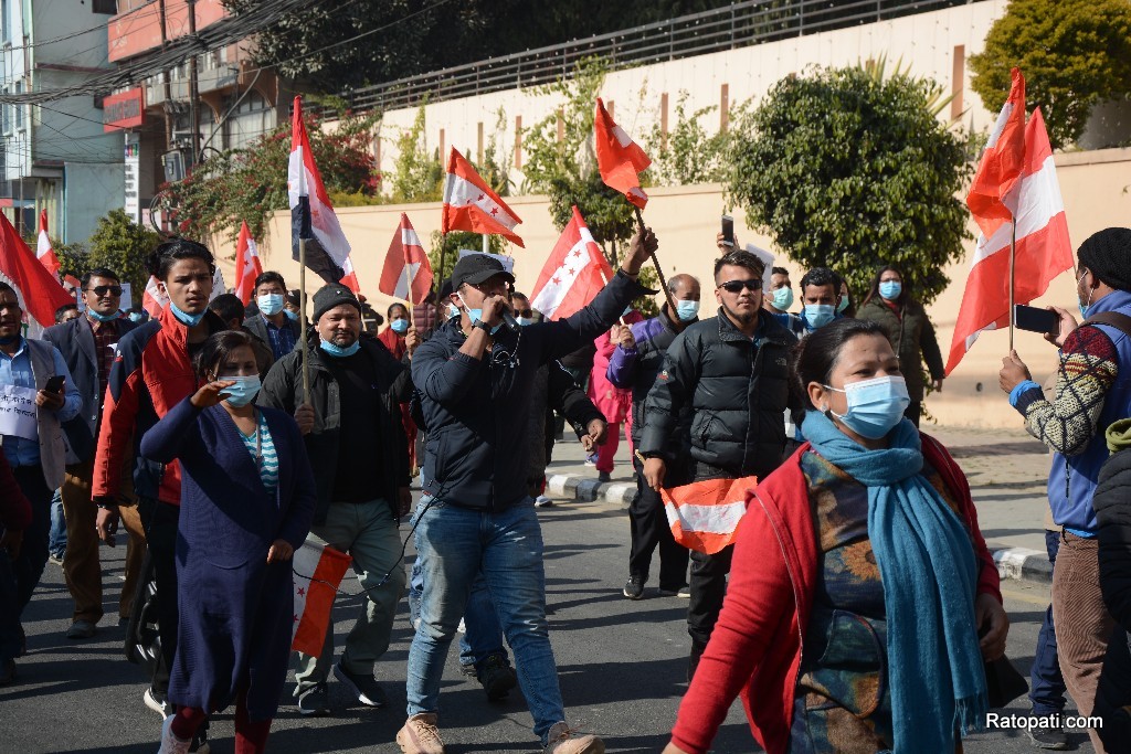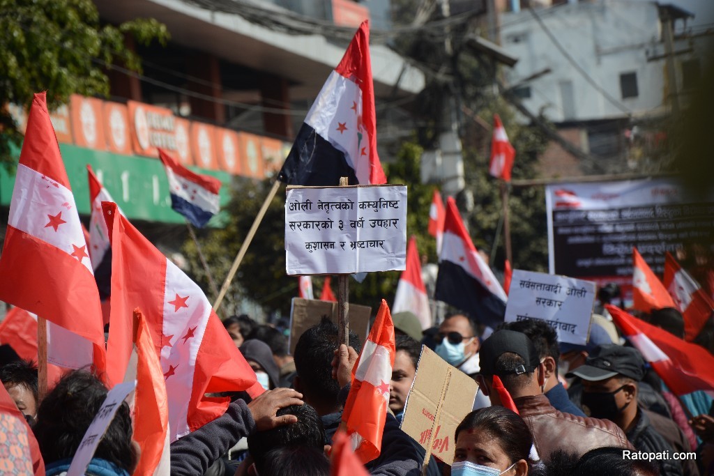 प्रधानमन्त्री केपी शर्मा ओलीको कदमविरुद्ध प्रमुख प्रतिपक्षी दल नेपाली काँग्रेस सोमबार देशभर प्रदर्शन गरेको छ । जसअनुसार काठमाडौंमा पनि काँग्रेसले प्रदर्शन गरेको छ । प्रधानमन्त्री ओलीले प्रतिनिधिसभा विघटन गरेको विरोधमा काँग्रेसले सडकबाट प्रदर्शन गरेको हो ।