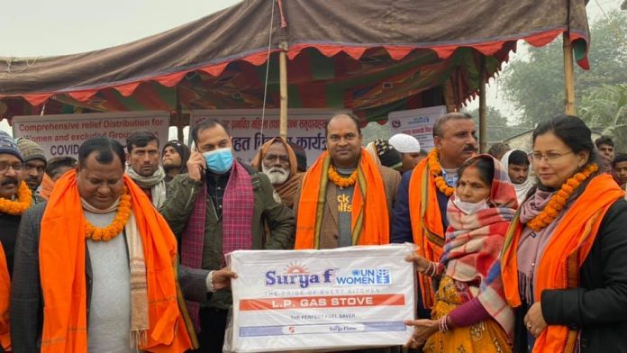 यूएन वुमनको सहयोगमा माण्डवीले कोविड १९ बाट प्रभावित महिला तथा विपन्न समुदायहरूलाई उक्त राहत सामाग्री उपलब्ध गराएको हो ।