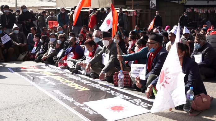 नेपाल कम्युनिष्ट पार्टी (नेकपा) पुष्पकमल दाहाल प्रचण्ड–माधवकुमार नेपाल पक्षले प्रतिनिधि सभा विघटनको विरोधमा धर्ना कार्यक्रम गरेको छ ।
