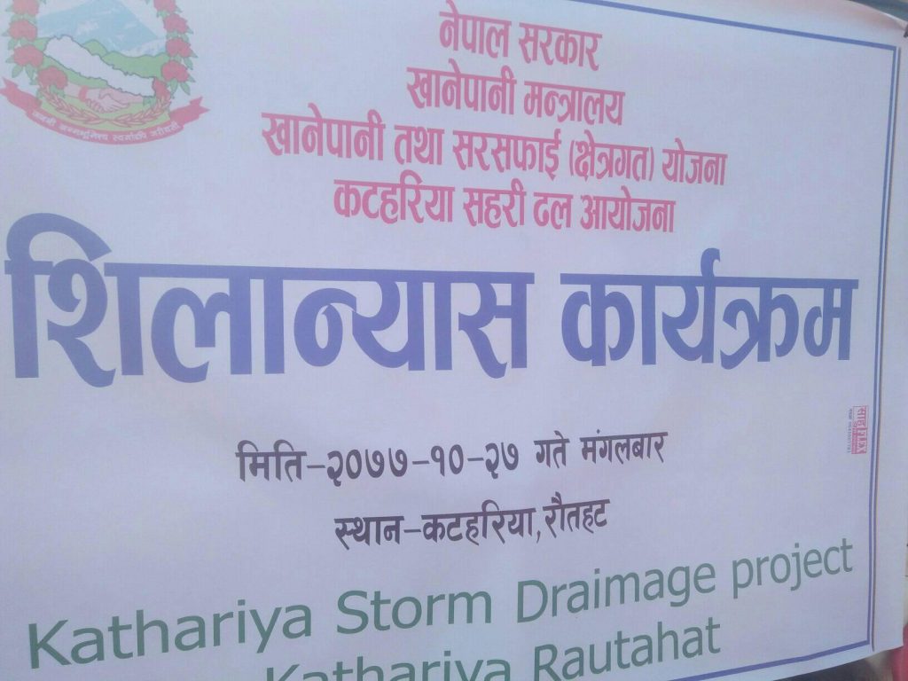 रौतहट जिल्लाको कटहरिया नगरपालिकाका नगर प्रमुख सियाराम कुश्वाहाले ढल निर्माणको सिलान्यास गरेका छन ।