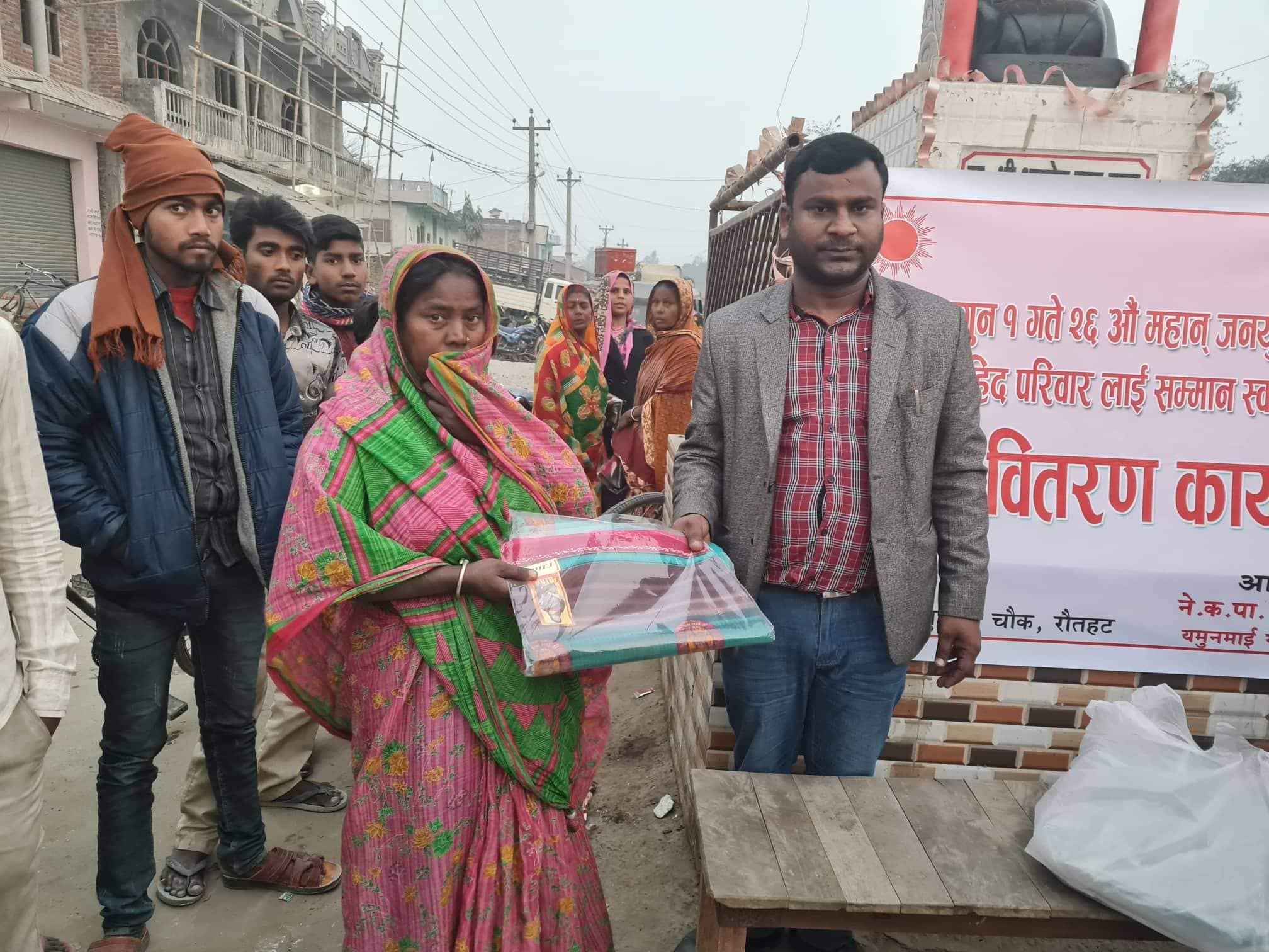 उक्त कार्यक्रममा यमुना माई गाउँ पालिका भरि का शहिद परिवार हरु लाई समान सवरुप एक सेट लुगा वितरण गरिएको थियो । उक्त कार्यक्रममा नन्दलाल यादव, शहिद परिवार संचार कर्मि,लगायत सर्वसाधारणको बाक्लो उपस्थितीरहेको थियो ।
