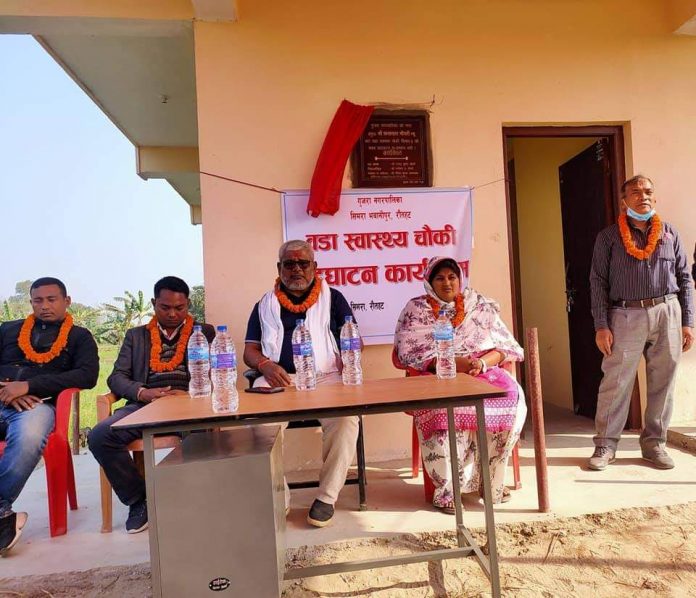 रौतहट जिल्लाको गुजरा नगरपालिकामा बनेको चार कोठे स्वास्थ चौकी भवनको उद्घाटन गरिएको छ । जिल्लाको गुजरा नगरपालिका वडा ३ मा बनेको स्वास्थ चौकी भवनको सोहि नगरपालिकाका नगर प्रमुख संतलाल चौधरीले उदघाटन गर्नु भएको हो ।वडा को जनश्रमदान सहित कुल ३८ लाखमा निर्मित चारकोठे स्वास्थ चौकी भवनको बिहिवार एक समारोह बीच मेयर चौधरीले उद्घाटन गर्नुभएको संजय मिश्रले बताउनुभयो।