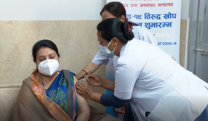 राष्ट्रपति विद्यादेवी भण्डारीले कोरोना विरुद्ध खोप लगाउनु भएको छ । सोमबार महाराजगञ्जस्थित त्रिभुवन विश्वविद्यालय शिक्षण अस्पताल पुगी उहाँले खोप लगाउनुभएको हो । खोप लगाएपछि संचारकर्मीलाई संक्षिप्त प्रतिक्रिया दिदै राष्ट्रपति भण्डारीले सबैलाई निर्धक्क भएर खोप लगाउन अपिल पनि गर्नुभयो । नयाँ भएको हुनाले केही शंका हुनु स्वभाविक भएपनि धेरै चरणको परीक्षण पछि मात्रै खोप आएकाले ढुक्क भएर खोप अभियानमा सहभागी हुन उहाँले सबैलाई आग्रह गर्नुभयो । अग्रपक्तिमा रहेको, जोखिममा काम गर्ने र वृद्धवृद्धालाई लगाएपछि मात्रै लगाउने सोच आफ्नो हुँदा हुदै पनि देशबाहिर जानुपर्ने भएकाले खोप लगाउन आएको पनि उहाँले स्पष्ट पार्नुभयो ।