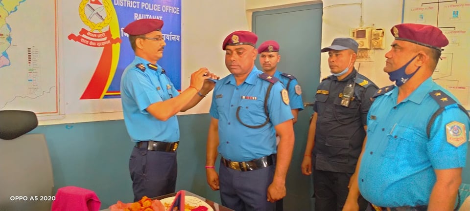 जिल्ला प्रहरी कार्यालय रौतहटले आफना मातहतका बढुवा भएका प्रशासन तफका प्रहरी हवलदार तथा प्रहरी सहायक निरिक्षकहरुको दज्र्यानी चिन्ह सुशोभन गरेको छ ।