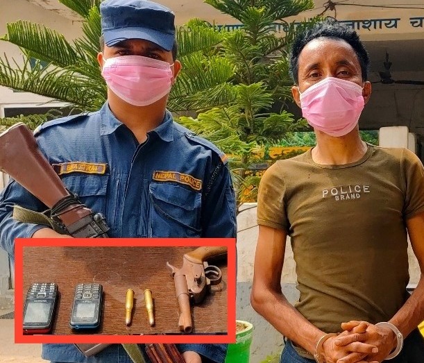 इलाका प्रहरी कार्यालय सिमरा र जीतपुरको संयुक्त प्रहरी टोलीले सैलुनमा बसेको भुमिहालाई शंकास्पद अवस्थामा खानतलाशी गर्दा कटुवा पेस्तोल एक थान, त्यसमा प्रयोग हुने गोली दुई राउण्ड र दुई थान मोबाइल बरामद भएको प्रहरीले जनाएको छ । पक्राउ परेका भुमिहारलाई हिरासदमा राखी यसबारे थप अनुसन्धान भइरहेको प्रहरीले जनाएको छ ।