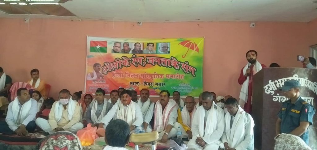 प्रदेश २ सरकारका भूमि व्यवस्था कृषि तथा सहकारी राज्य मन्त्री माननीय श्री योगेन्द्र राय यादवको प्रमुख आतिथ्यमा आज रौतहट निर्वाचन क्षेत्र नं १ को ख स्थित पिप्रा बजारमा होलिके रंग, जनता के संग नाराका साथ होली मिलन सांस्कृतिक समारोह कार्यक्रम भव्यताका साथ सम्पन्न भएको छ ।