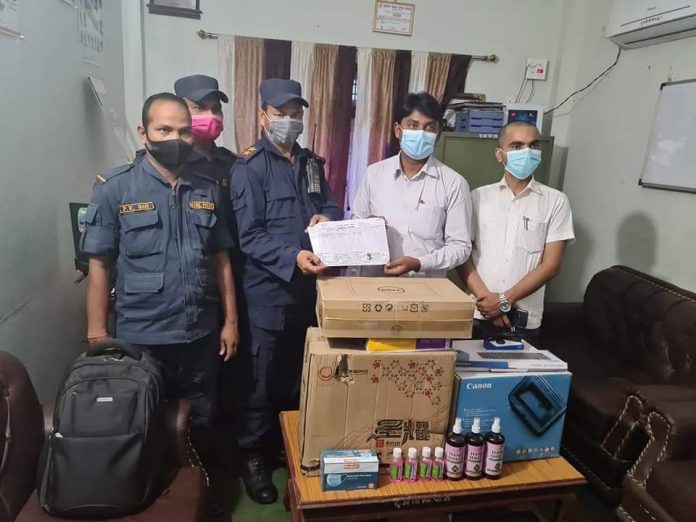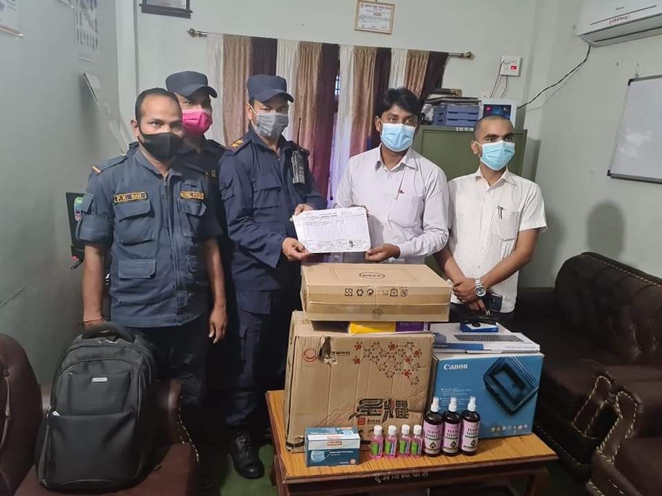देशभर कोभिड(१९ को प्रकोप बढ्दै गएको अवस्थालाई मध्य नजर गरी रौतहट जिल्लाको दुर्गा भगवती गाउँपालिका अध्यक्ष अरुण साहले ईलाका प्रहरी कार्यालय गंगा पिपरालाई सुरक्षा सामग्री सहित ईलेक्ट्रोनिक्स सामान हस्तान्तरण गरेको हो । कम्प्युटर सेट १ थान, प्रीन्टर थ्री इन वन एक सेट, फोटो कपि पेपर १ रिम, सेनिटाईजर, माक्स लगायतका सामग्रीहरु हस्तान्तरण गरेको हो ।