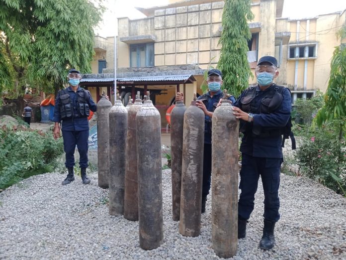 २५ बैशाख ।अखिलेश कुमार यादव । स्वास्थ्य प्रयोजन बाहेक अन्य प्रयोजनमा प्रयोग गर्ने उदेश्यले स्टक गरि राखेको वर्कसप, मोटर ग्यारेज, मेटल उद्यो र ग्यास वेल्डिङ गर्ने ठाउँ लगायतबाट संकलन गरेर रौतहट प्रहरीले ४३ वटा अक्सिजन सिलिन्डर नियन्त्रणमा लिएको छ ।