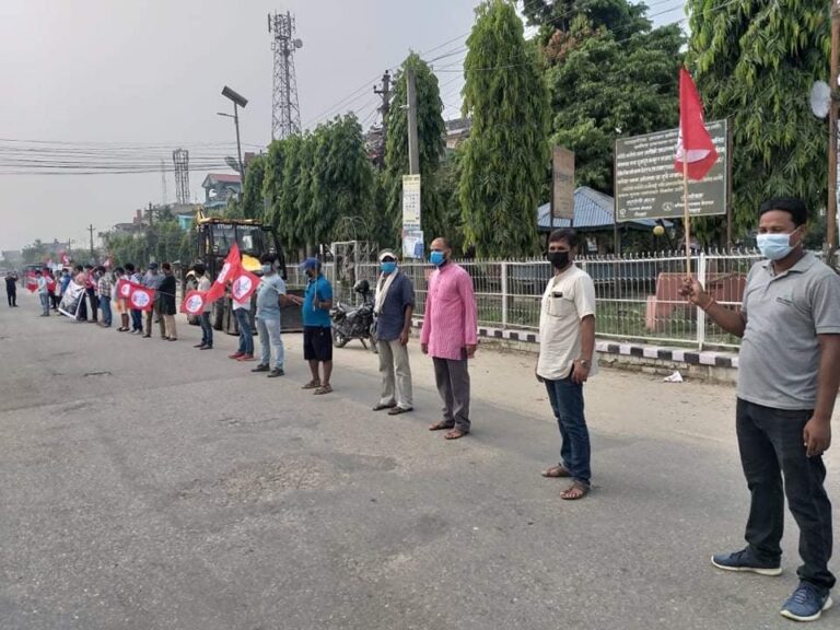 रौतहटको चन्द्रनिगाहपुरमा सरकार बिरुद्ध प्रदर्शन गरेको छ । नेपाल बिद्यार्थी संघ रौतहटले चन्न्द्रपुरको मुख्या चोकमा शुक्रबार बिहान सरकार बिरुद्ध चर्को नारा लगाउदै प्रदर्शन गरेका छन । प्रदर्शन कर्ताहरुले केपि ओलि राजिनामा दे , बहुल राज्य चाहिदैन , राजेन्द्र महतो राजिनामा दे , संसद विघटन फिर्ता गर , कोभिड खोपको तत्काल ब्यवस्था गर , रास्ट्रपतिको असंबैधानिक कदम खारेज गर,चुरे दोहन सम्बन्धी नीति खारेज,भ्रष्ट सरकार राजिनामा दे जस्ता नारा लेखिएको प्ले कार्ड सहित चन्द्रपुरमा नेपाल विद्यार्थी संघ रौतहटले प्रदर्शन गरेको हो । नेपाल विद्यार्थी संघ रौतहटका अध्यक्ष देवराज कार्कीको नेतृत्वमा नेवि संघ जनज्योती बहुमुखि क्याम्पसका सभापति संगम श्रेष्ठ , सुमन गौतम , श्यामहरि चौलागाई , अधिकार लामिछाने , सुशिल अधिकारी लगायतका विद्यार्थी नेताहरुको सहभागीतामा सामाजिक दुरि कायम गरि सरकारको चर्को बिरोध प्रदर्शन गरेका नेवि संघ रौतहटले जनाएको छ ।
