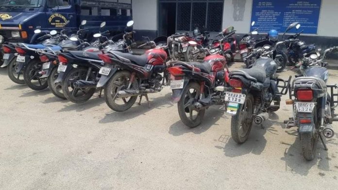 जिल्ला प्रहरी कर्यालय पर्साले ८ वटा भारतीय नम्बरको मोटरसाइकल जिल्लाको विभिन्न स्थानबाट पक्राऊ गरेको छ ।निषेधाज्ञा उल्लङ्घन गरी अनाधिकृतिरुपमा पर्सा जिल्लाको विभिन्न स्थानमा चलाईएका तथा कागजपत्र नभएका ८ वटा भारतीय नम्बरको मोटरसाइल प्रहरीले नियन्त्रणमा लिएको छ। पर्सा जिल्लामा बैशाख १६ गतेदेखि जारि निषेधाज्ञा कार्यन्वयन गराउन जिल्ला प्रहरी कार्यालय पर्सा खटेको प्रहरी टोलीले विभिन्न स्थानमा चेकिङ गर्दा तथा मोबाइल टोलीले वेवारिसे अवस्थामा रहेका मोटरसाइकलहरु नियन्त्रणमा लिएको पर्सा प्रहरीका प्रवक्ता एवम् प्रहरी नायव उपरीक्षक ९डिएसपी० ओमप्रकाश खनालले जानकारी दिए ।नियन्त्रणमा लिएका मोटरसाइकलहरुको मुल्याङ्कन ४ लाख ५५ हजार रुपैयाँ गरी आवश्यक कारवाहीको लागि वीरगञ्ज भन्सार कार्यालयमा बुझाइएको डिएसपी खनालले बताए ।