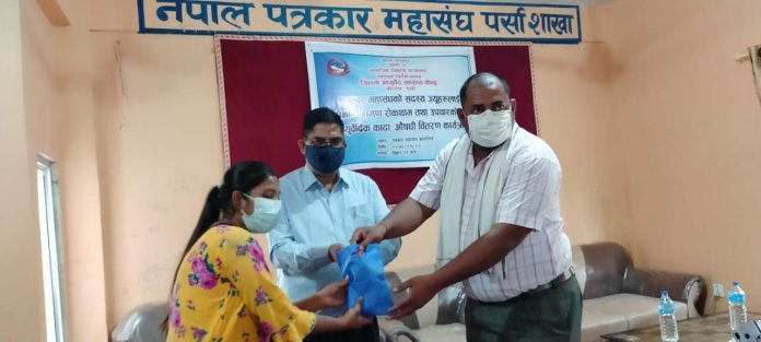 नेपाल पत्रकार महासघ पर्साका अध्यक्ष अनुप तिवारीको अध्यक्षमा संचालन गरि आयुर्वेद औंषधि काढा बितरण गरिएको छ ।जिल्ला आयुर्वेद स्वास्थ्य केन्द्र बिरगंज पर्साका प्रमुख डा. रमेश मिश्राले अध्यक्ष तिवारीलाई आयुर्वेद औंषधि हस्तान्तरण गर्नु भएको हो। स्वास्थ्य औंषधिमा गिलोय चुर्ण -१ पिस , अमृत क्वाथ चिया-१ पिस र अश्वगन्धा चुर्ण -१ पिसको सेट १०० वटा बितरण गरिएको अध्यक्ष तिवारीले बताउनु भयो।