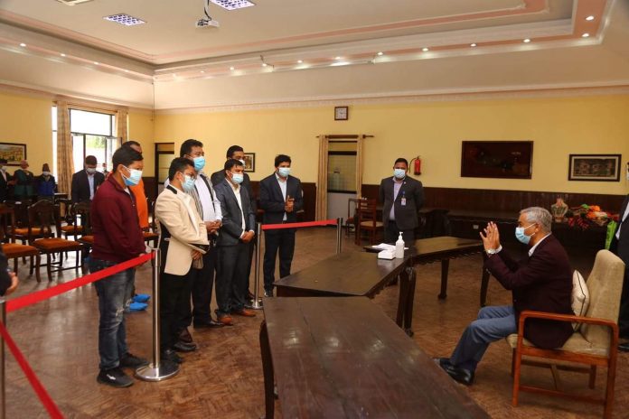 प्रधानमन्त्री निवास बालुवाटारमा प्रधानमन्त्री शेर बहादुर देउवा सँग