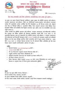 ‘प्रेस प्रतिनिधि प्रमाणपत्र जारीरनवीकरण, अनलाइन सञ्चारमाध्यम दर्तारनवीकरणसँग सम्बन्धित सेवा अनलाइन तथा भौतिक उपस्थिति दुवै तरिकाबाट भइरहेकोमा आगामी मिति २०७८ साउन २० गते बुधवारदेखि विभागबाट प्रवाह हुने सेवाहरूमध्ये प्रेस प्रतिनिधि प्रमाणपत्र जारीरनवीकरण र अनलाइन सञ्चारमाध्यम दर्तारनवीकरणको कार्य विभागको वेभसाईटमा रहेको अनलाइन सेवामार्फत पूर्ण अनलाइनमा आधारित भई तपसिलको विधिबाट मात्र सेवा प्रवाह गरिने हुँदा सम्बन्धित सबैको जानकारी लागि यो सूचना प्रकाशन गरिएको छ’, विभागका शाखा अधिकृत वसन्त बहादुर खत्रीद्वारा जारी सूचनामा भनिएको छ ।