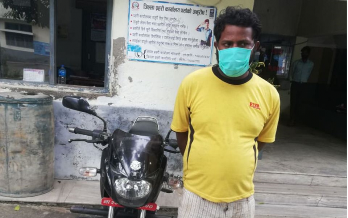 वीरगञ्ज महानगरपालिका १४ का २८ वर्षीय राधे पटेललाई प्रहरीले पक्राउ गरेको हो । पटेल महानगरपालिका १३ बस्ने सुशिम अधिकारीको घरमा पार्किङ गरि राखेको ना २२ प ५७५० नम्बरको मोइटरसाइकल चोरि गरेर भागेका थिए ।