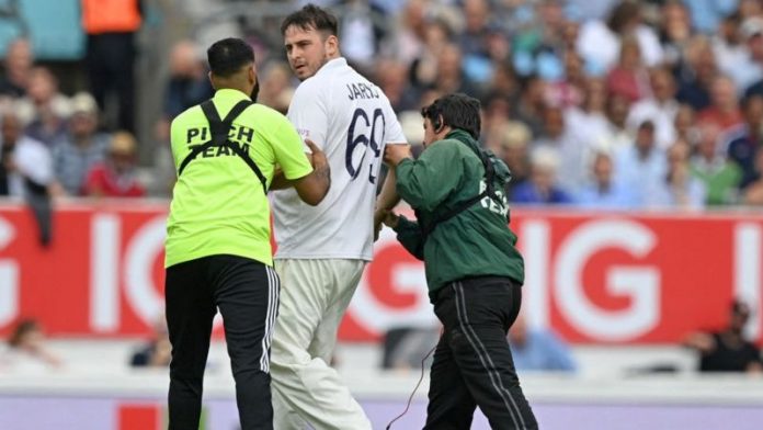 भारत र इंग्ल्याण्डबीच ओभल मैदानमा चलिरहेको चौथो टेस्टको दोस्रो दिन एक व्यक्ति मैदानमा प्रवेश गरेर खेलाडीमाथि आक्रमण गरेको आरोपमा पक्राउ परेका छन् । ती व्यक्ति मैदानमा प्रवेश गरेर जोनी बेयर्सटोलाई धक्का दिएका थिए । जार्वो नाम गरेका तीन व्यक्ति बिहानको सत्रमा मैदानमा प्रवेश गरेका थिए । भारतीय बलर उमेश यादवको नक्कल गर्दै उनले बेयर्सटोलाई धक्का दिएका थिए । यसअघि पहिलो दुई टेस्ट खेलमा पनि उनले यस्तै हरकत गरेका थिए । अहिले भने उनलाई पक्राउ गरिएको छ । इंग्ल्याण्ड एन्ड वेल्स क्रिकेट बोर्डले भनेको छ, ‘पिचमा कुनै प्रकारको अतिक्रमण अस्वीकार्य छ । जहाँ खेलाडीको सुरक्षाको कुरा आउँछ हामी त्यसलाई स्वीकार गर्दैनौँ ।’ जार्वोलाई दक्षिणी लण्डनस्थित एक प्रहरी स्टेसनमा हिरासतमा राखिएको बीबीसीले जनाएको छ ।इंग्ल्याण्डले ब्याटिङ गरिरहँदा ३४ औँ ओभर यो घटना भएको थियो । भारतका उमेश यादव बलिङ गरिरहेका बेला जार्भो दौडिँदै मैदानमा प्रवेश गरेका थिए । यादवको नजिकबाट कुद्दै उनले यादवको नक्कल गर्दै बलिङ गरेका थिए । त्यसपछि ननस्ट्राइकरमा खडा भएका बेयर्सटोलाई धक्का दिएका थिए ।