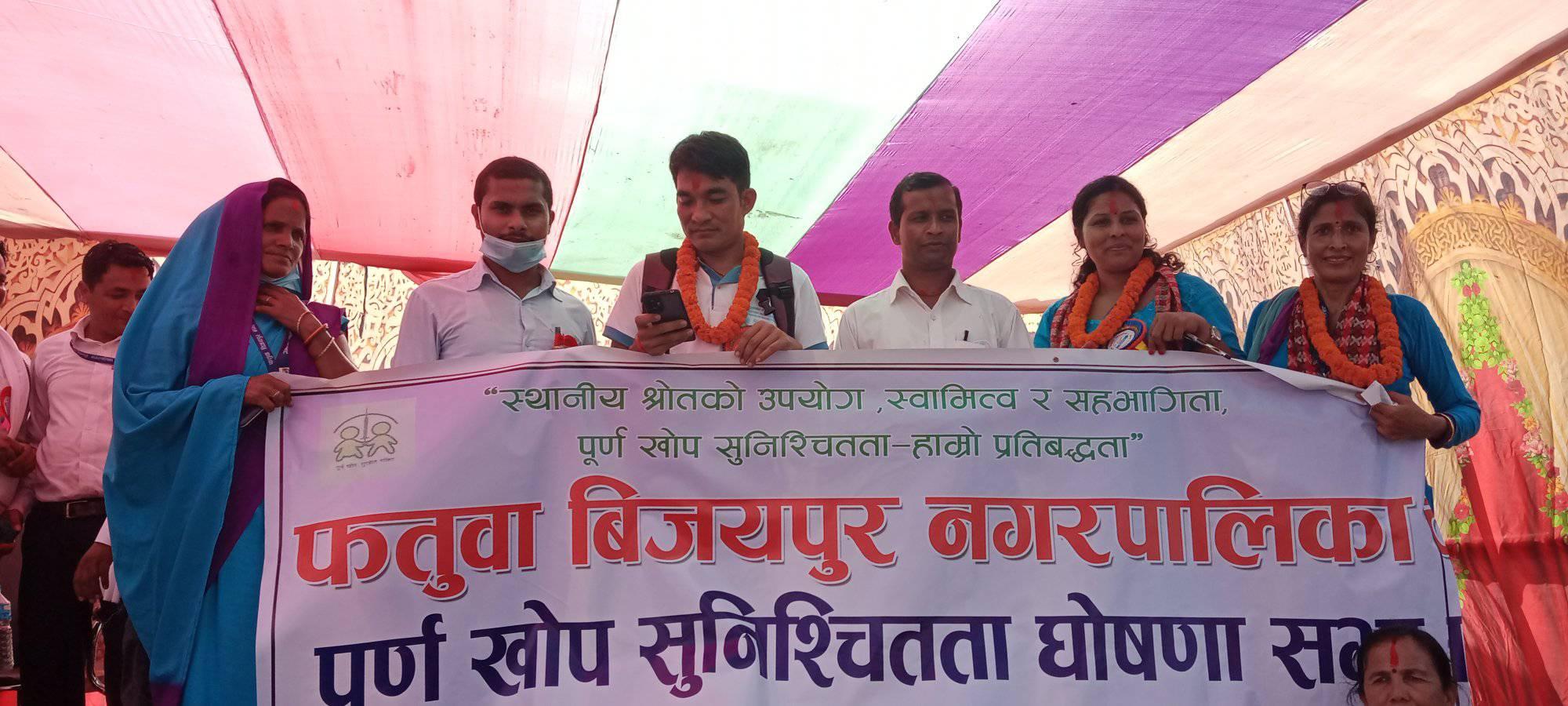 यसै का साथ रौतहट जिल्ला भित्र घोषणा गर्ने पालिकाहरु मध्य फतुवा विजयपुर सातौ पालिका भएको छ । नगरपालिकाका वडामा जन्मेदेखि २३ महिनासम्मका बालबालिकाहरुलाई दिईने १३ थरीका विभिन्न खोपहरु लगाईसकेको हुँदा पूर्ण खोप नगरपालिका घोषणा गरिएको नगरप्रमुख यादवले बताए ।
