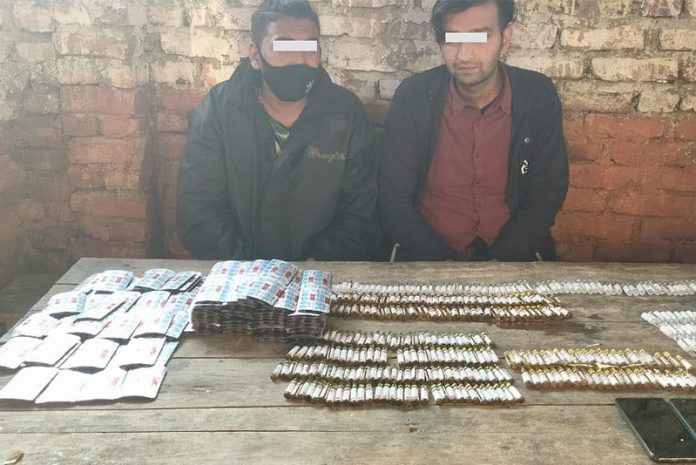महोत्तरीमा लागु औषधसहित दुईजना पक्राउ परेका छन्। पक्राउ पर्नेमा गोर्खाको बुढीगण्डकी गाउँपालिका–२ का २३ वर्षीय अजय परियार र नुवाकोटको विदुर नगरपालिका–७ का ३० वर्षीय संजय भट्ट रहेका छन्।आइतबार साँझ पक्राउ परेका उनीहरुको साथबाट नाइट्राभेट ट्यावलेट २३७० थान, प्रामेफाजिन हाइड्रोक्लोराइड इन्जेक्सन १२१ थान, ओफिन इन्जेक्सन ११८ थान, डाइजेल्याव इन्जेक्सन १७१ थान, डाइजेपाम इन्जेक्सन ४६ थान बरामद गरेको सशस्त्र प्रहरी बल नेपाल नम्बर ९ गणका गणपति सशस्त्र प्रहरी उपरीक्षक सुरेश सापकोटाले जानकारी दिए।सशस्त्र प्रहरीले सम्सी गाउँपालिका–७ चाँदनी चोकमा प्रदेश नं. ०२–०२२ प ३४७२ नम्बरको मोटरसाइकलमा सवार उनीहरुलाई चेक गर्दा कालो झोलामा अगरबत्तीभित्र लागु औषध लुकाएर ल्याउँदै गरेको अवस्थामा फेला पारेको सशस्त्र प्रहरी उपरीक्षक सापकोटाले बताए। पक्राउ परेका दुवैजनालाई आवश्यक कारवाहीका लागि प्रहरीलाई जिम्मा लगाइएको छ।