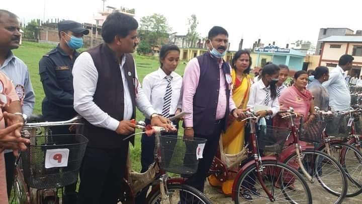 प्रदेश नं २ सरकारका कृषि राज्यमन्त्री योगेन्द्र यादवको प्रमूख उपस्थितामा विद्यालयका छात्रालाई ९७ वटा साइकल वितरण गरिएको हो । यो विद्यालयको लागि सरकारले कुल ११९ वटा साइकल वितरण गर्ने जनाएको छ । जसमध्ये ९७ साइकल आज वितरण भएकाे छ भने बाँकी रहेको २२ वटा साइकल पनि जन्मदर्ता पेश गरेपछि वितरण गरिनेछ ।No description available.