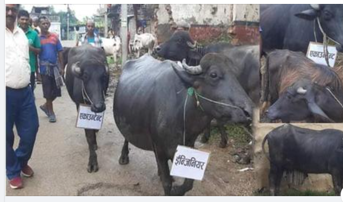धनुषा । नेपालमै पहिलो पल्ट अनौठो किसिमको जुलुस प्रदर्शन गरिएको छ ।धनुषाको स्थानिय बासीन्दाहरुले घर घरवाट भैसी लिएर जुलुसमा निस्केका प्रस्ट नै देखिन सकिन्छ । भैंसीको घाँटीमा प्लेकार्ड झुण्ड्याइएको छ । जसमा कर्मचारी र मेयर भनेर उल्लेख गरिएको छ । धनुषाको सबैला नगरपालिकामा सूचना माग गर्दै स्थानियले आइतवार यस्तो जुलुस निकालेका हुन् ।