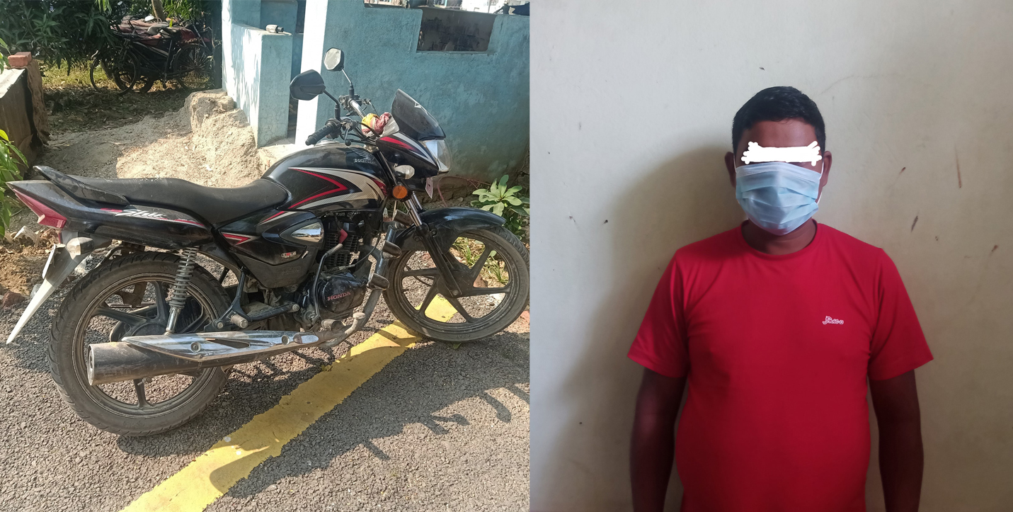 उक्त स्थानबाट चोरी भएको कालो रंगको १२५ सी सीको साईन मोटरसाईकल नम्बर परिवर्तन गरी ल्याएको छ भनी बिशेष सुचना प्रहरीलाइ प्राप्त हुन आएको थियो । उक्त सुचनाको आधारमा जिल्ला बारा बारागढी गाउँपालिका वडा नं। ६ हंगोलिया टोल बस्ने वर्ष ४५ को मेदु प्रसाद चौधरीलाई यस कार्यालयबाट खटिएको प्रहरी अधिकृत समेतको टोलीले पक्राउ गर्न सफल भएको छ । निज ब्यक्तीलार्ई चोरी मुद्दामा सम्मानित बारा जिल्ला अदालतबाट म्याद थप गरी अनुसनधान कार्य भइरहेको प्रहरीले जनाएको छ ।