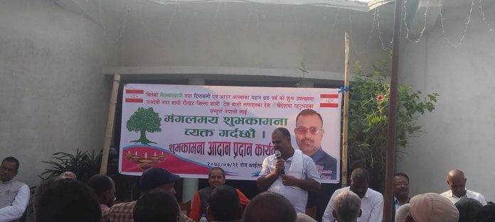 देशमा नेपाली काँग्रेसको महाधिवेशनको महोल चलिरहेकै बेला उनले वितेको दिपावली तथा आउन लागेको महा पर्व छठको उपलक्ष्यमा कार्यक्रमको आयोजना गरि शुभकामना आदान प्रदान गनर्स भएको हो । आयोजित कार्यक्रममा नेपाली काँग्रेसका जिल्ला सभापति कृष्णा यादव, नेता श्री राम राय यादव, दुर्गा भगवती गाउपालिका अध्यक्ष अरुण कुमार साह, राजदेवी नगरपालिका ७ मुडवलवाका युवा नेता धर्मेंद्र प्रसाद यादव एवम पार्टीका अन्य नेता तथा कार्यकर्ता साथै समाजसेवीहरुको उपस्थिति रहेको थियो।