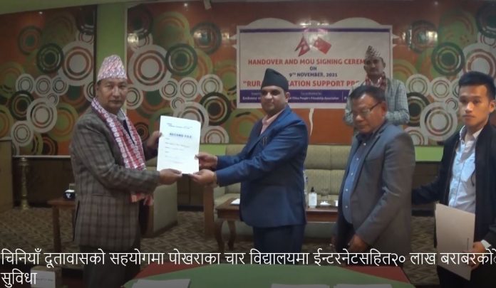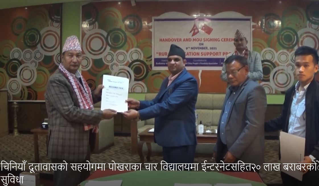 चिनियाँ दुतावासले पोखराका चार सरकारी विद्यालयमा निःशुल्क इन्टरनेटसहित २० लाख रुपैयाँ बराबरको सुविधा उपलब्ध गराउने भएको छ ।