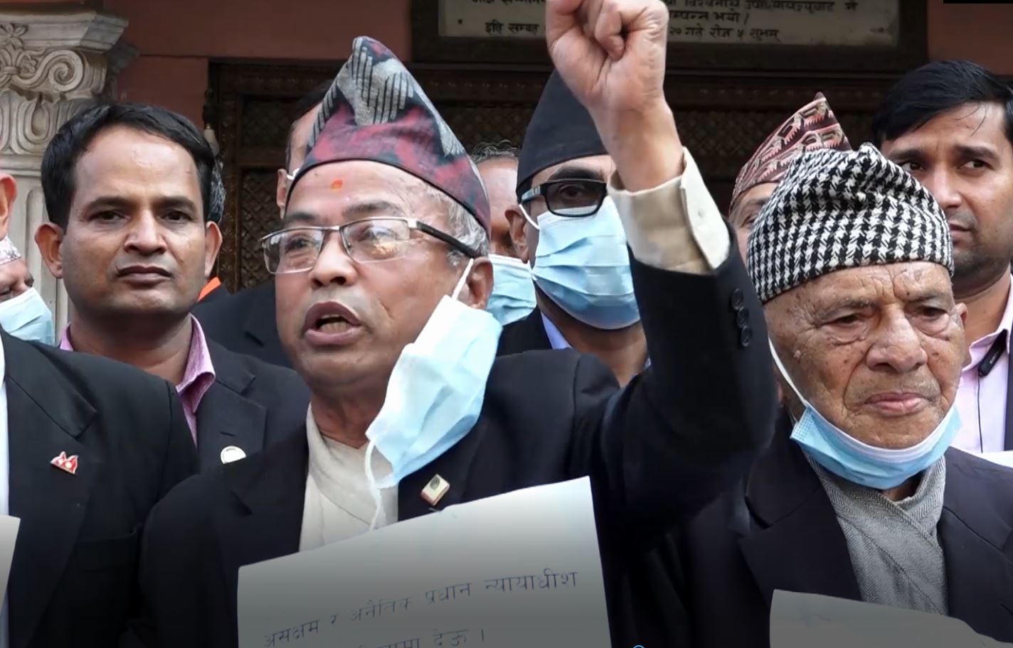 आइतबार सर्वोच्च अदालतमा धर्ना दिनुअघि नेपाल बार एसोसिएसनको भवन परिसरमा कानुन व्यवसायीहरुलाई सम्बोधन गर्दै अध्यक्ष श्रेष्ठले प्रधानन्यायाधीश जबरालाई पदच्युत गर्नुपर्ने अपरिहार्य अवस्थामा पुगिएको बताउनुभएको हो । जबरा रहुञ्जेल न्यायपालिकालाई सुधार गर्न नसकिने भएकोले बारले राजीनामा माग गरिररहेको र राजीनामा नआएमा पदच्युत गर्नुपर्ने अवस्था आउनसक्ने उहाँले बताउनुभयो । प्रधानन्यायाधीश जबराले न्यायमा विचलन ल्याइ न्याय प्रशासनलाई बर्बाद बनाएको उहाँको आरोप छ । उहाँले भन्नुभयो – ‘हामीहरु आफ्नो न्यायपालिका सुधारको लागि लागेका छौँ । न्यायपालिकाको बाधक चोलेन्द्र शमसेर जबरा जबसम्म रहन्छ, हामीले न्यायपालिका सुधार गर्न सक्दैनौँ । त्यसकारण प्रधानन्यायाधीशको राजीनामा अपरिहार्य छ । राजीनामा मात्रै होइन अब त पदच्युत पनि गर्नुपर्ने अपरिहार्य अवस्थामा हामी पुगेका छौँ । जबरा जबसम्म पदच्युत हुँदैन, अरु सुधारको कार्यक्रम गर्न सकिदैनँ । जसले न्यायमा विचलन ल्याएको छ, जसले न्याय प्रशासनलाई बरबाद गरेको छ । जसले यो देशलाई बर्बाद गर्न खोजिराखेको छ, त्यस्तो व्यक्तिहरु न्यायपालिकामा रहन सक्दैनँ । कुनैपनि हालतमा राख्न सक्दैनौँ ।नेपाल बार एसोसिएसनले आइतबार पनि सर्वोच्च अदालतको मूल गेटमा धर्ना दिएको छ । प्रधानन्यायाधीश जबराको राजीनामा माग गर्दै आन्दोलनरत बारले आइतबार बिहान १० बजेदेखि ११ः३० बजेसम्म सर्वोच्च अदालत परिसरमा धर्ना दिएको हो । धर्नाको क्रममा कानुन व्यवसायीहरुले ‘भ्रष्टाचारी प्रधानन्यायाधीश राजीनामा दे, बार एकता जिन्दावाद, हाम्रो आन्दोलन जारी छ’ लगायतका नाराबाजी समेत गरेका थिए भने असक्षम र अनैतिक प्रधानन्यायाधीश राजीनामा दे, विधिको शासन कायम गर, न्यायपालिकाको गरिमा कायम राख्न नसक्ने प्रधानन्यायाधीश राजीनामा देउ लगायतका प्लेकार्डहरु प्रर्दशन समेत गरेका थिए । सर्वोच्च अदालत परिसरमा कानुन व्यवसायीहरुले धर्ना दिइरहेको समयमा सर्वोच्च परिसर बाहिर बार एसोसिएसनको विरोधमा केही व्यक्तिहरुले नाराबाजी गरेका थिए । लगत्तै बारको विरोधमा नाराबाजी गर्ने केही व्यक्तिहरुलाई प्रहरीले नियन्त्रणमा लिएको छ । सर्वोच्चमा धर्नाको क्रममा बोल्दै बार एसोसिएसनका अध्यक्ष चण्डेश्वर श्रेष्ठले प्रधानन्यायाधीशले न्यायलयलाई किनबेचको बस्तु बनाएको बताउनुभयो । शान्तिपूर्ण आन्दोलनलाई बिथोल्न बिचौलीयाहरु आएको भन्दै उहाँले बिचौलियाहरुको पनि सम्पति छानविन गरी जफत हुने चेतावनी दिनुभयो । उहाँले भन्नुभयो – ‘चोलेन्द्र शमशेर जबराले प्रधानन्यायाधीशको सिटमा बस्ने अधिकार छैन । उहाँले अधिकार गुमाइसक्नुभएको छ । उहाँको प्रवेश न्यायपालिकालाई थप भ्रष्ट बना