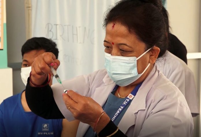 स्वास्थ्य तथा जनसंख्या मन्त्री बिरोध खतिवडा र अमेरिकी सहायक विदेश मन्त्री डोनाल्ड लूले त्रिभूवन विश्वविद्यालय शिक्षण अस्पताल महाराजगञ्जको फाइजर खोप केन्द्र अवलोकन गर्नुभएको छ ।