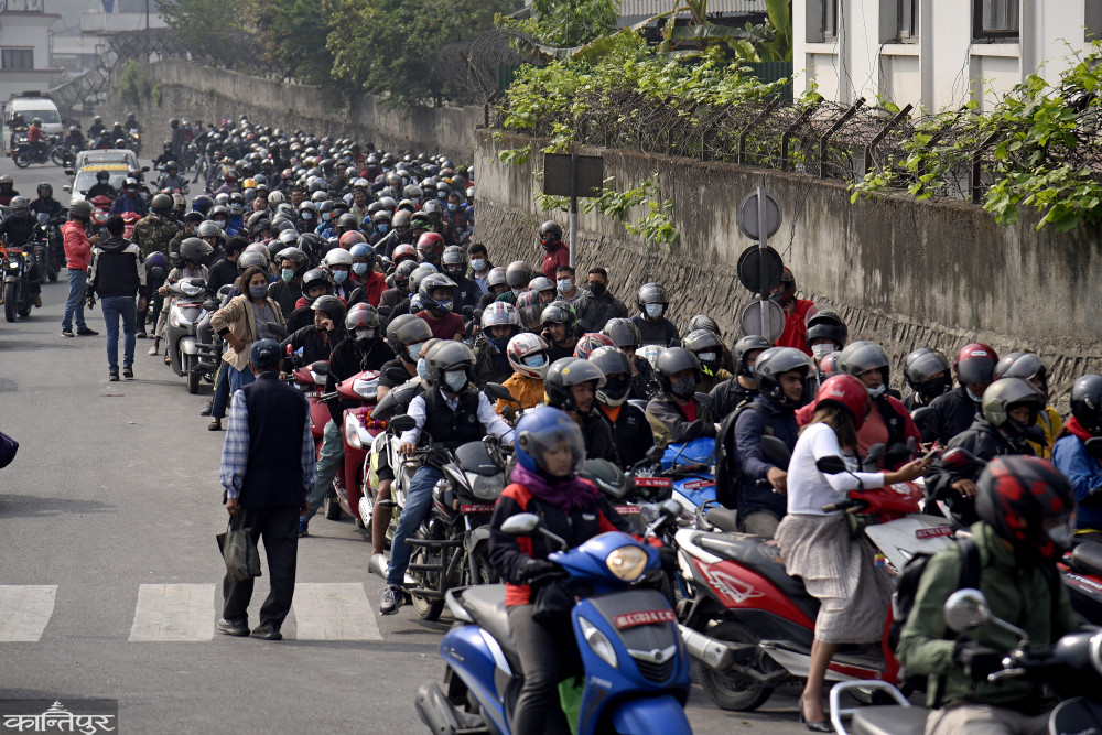 काठमाडौँ — पेट्रोलियम व्यवसायीले आन्दोलनका सम्पूर्ण कार्यक्रम स्थगन गर्ने सहमति पछि पनि आइतबार पेट्रोल पम्पहरुमा सर्वसाधारणहरुको भीडभाड उस्तै छ । पेट्रोल नपाउने चिन्ताले केही दिनदेखि काठमाडौंका पेट्रोल पम्पहरुमा सर्वसाधारणको भीड बढेको छ । चैत ६ देखि ग्यासको पीडीओ खरिददेखि इन्धन लोडअनलोड बन्द गरेका पेट्रोलियम व्यवसायीले आयल निगमसँग शनिबार राति चारबुँदे सहमति गर्दै आन्दोलन फिर्ता लिएका थिए ।बाह्य तथा आन्तरिक ढुवानी साधनको भाडामा डिजेलको मूल्य अनुपातमा घटबढ हुने गरी स्वचालित भाडा कायम गर्न माग गर्दै एलपी ग्यास उद्योग संघ, पेट्रोलियम डिलर्स एशोसिएशन र पेट्रोलियम ढुवानी व्यवसायीहरु आन्दोलनमा उत्रिएका थिए । यातायात क्षेत्रमा जसरी इन्धन ढुवानीमा समेत वैज्ञानिक भाडा लागू गर्नुपर्ने भन्दै एलपी ग्यास तथा पेट्रोलियम पदार्थको कारोबार गर्ने व्यवसायीले राष्ट्रिय पेट्रोलियम व्यवसाय संस्थागत समन्वय समिति बनाएर आन्दोलन गरिरहेका थिए ।रुसले युक्रेनमा गरेको आक्रमणका कारण कच्चा तेलको मूल्य अचाक्ली बढेपछि निगमले पेट्रोलियम व्यवसायीले पाइरहेको कमिसन बढाएको छैन । त्यसैको झोंकमा ६ बुँदे माग राख्दै व्यवसायीले अत्यावश्यक वस्तु इन्धनको लोड नै बन्द गरेका थिए । निगमले जायज माग सम्बोधन गर्ने आश्वासन दिए पनि सर्वसाधरणलाई दु:ख दिन व्यवसायीहरुले इन्धन ढुवानी नै बन्द गरेका थिए ।