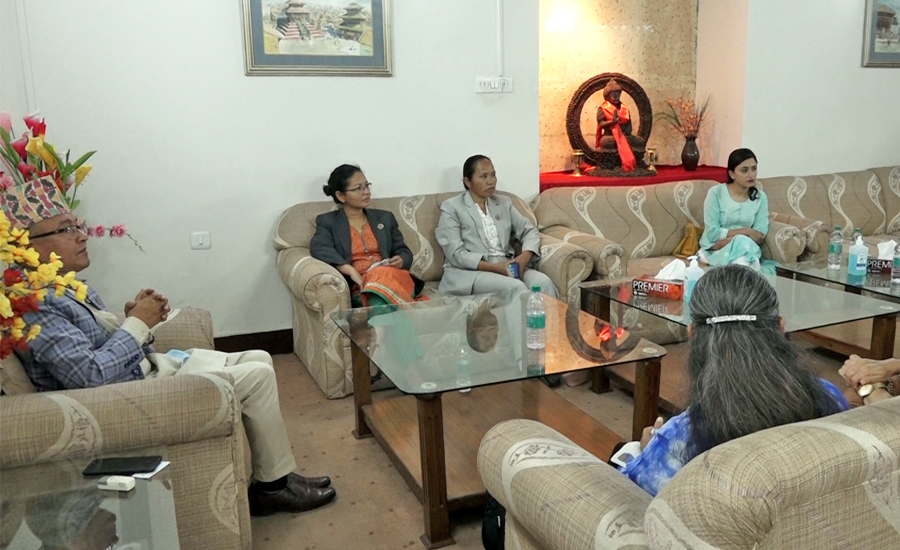 विभिन्न राजनीतिक दलमा आवद्ध महिला नेतृहरुले स्थानीय तहको निर्वाचनमा प्रमुख वा उपप्रमुख मध्ये एकमा मात्र उम्मेद्वारी दिँदा महिला अनिवार्य गर्न माग गरेका छन् ।शुक्रबार दिउँसो प्रमुख निर्वाचन आयुक्त दिनेशकुमार थपलियासँग सामूहिक भेट गरी महिला नेतृहरुले समावेशी समानुपातिक सिद्धान्तको आधारमा महिलाहरुको उम्मेदवारी हुनुपर्ने संवैधानिक व्यवस्था कार्यान्वयन गर्न दबाब दिएका छन् ।कुनै दलले एउटा मात्रै उम्मेदवारी दिन्छ भने त्यसमा महिला अनिवार्य हुने व्यवस्था गर्न माग गरेको नेकपा (एमाले)की नेतृ विन्दा पाण्डेले जानकारी दिइन् ।‘कुनै पनि दलले एउटा मात्रै उम्मेदवार दिन्छ भने त्यसमा महिला अनिवार्य हुुनुपर्छ भन्ने खालको जुन कुरा उल्लेख छ,’ उनले भनिन्, ‘त्यसमा फिर्ता लिने सन्दर्भमा पनि महिलाको फिर्ता लिन नमिल्ने व्यवस्था गर्नुपर्छ ।’