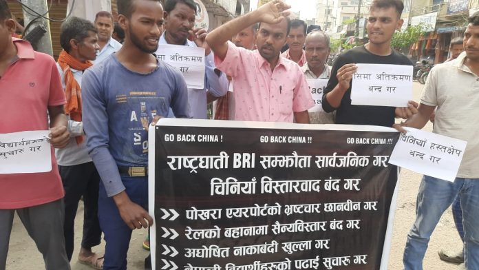 विधार्थी परिषदका केंद्रीय संयोजक विवेक कुशवाहा को नेतृत्वमा भएको बिरोध प्रदर्शनमा राष्ट्रघाती बीआरआई सम्झौता सार्वजनिक गर, चिनिया विस्तारवाद बन्द गर, पोखरा बिमानस्थलमा भएको भष्टाचार छानबिन गर, रेलको बहानामा सैन्य विस्तार बन्द गर, अघोषित नकाबन्दी खुल्ला गर, नेपाली विधार्थीहरुको पठन पाठन सुचारु गर र मीचिएको नेपाली भूमि फिर्ता गर जस्ता नारा लगाइएको थियो ।विद्यार्थीहरुले चीनविरूद्ध नारा लगाउँदै चिनियाँ राष्ट्रपति सी चिङपिङको पुतला समेत दहन गरेका छन् ।सन् २०१३ देखि नै चर्चा चल्दै आएको भए पनि नेपालले आधिकारिक रूपमा बीआरआईलाई अँगालेको चाहिँ सन् २०१७ को मे १२ मा मात्र हो।हाल बीआरआई अन्तर्गत नेपालले रेल, सडक, ऊर्जा गरी आठ दशवटा परियोजनामा चिनियाँ लगानी भित्र्याउन खोजिरहेको भनिए पनि आधिकारिक रूपमा तिनको पहिचान भइसकेको छैन।