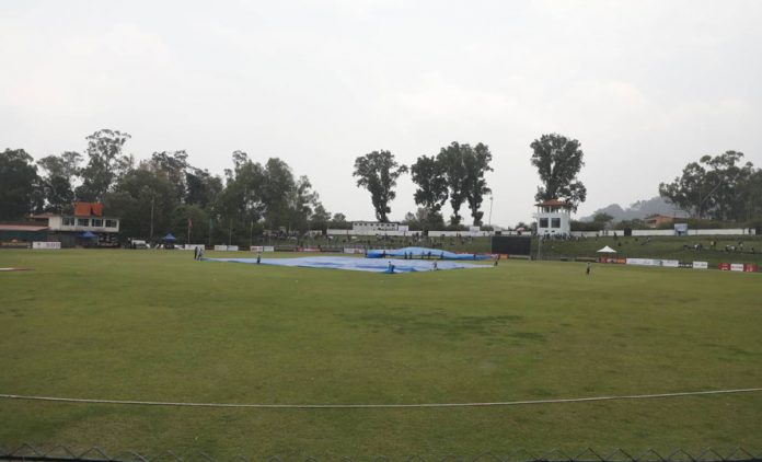 नेपाल र जिम्बावे ‘ए’ टिमबीच टी-२० शृंखलाको दोस्रो खेल वर्षाका कारण प्रभावित भएको छ ।कीर्तिपुरस्थित त्रिवि मैदानमा टस हारेर ब्याटिङ गरेको जिम्बावे टोलीले ४.३ ओभरमा २ विकेट गुमाएर ४८ रन बनाउँदा खेल वर्षाले रोकिएको हो ।
