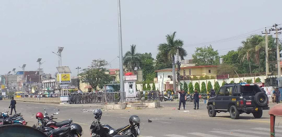 बाँकेको नेपालगञ्जस्थित धम्बोजी चोक (वीरेन्द्र चोक) तनावग्रस्त भएको छ । स्वर्गीय राजा वीरेन्द्रको सालिक राख्ने प्रयासमा प्रहरी प्रशासनले हस्तक्षेप गरेपछि तनाव भएको हो । स्थिति नियन्त्रणमा लिन प्रहरीले हवाई फायर र अश्रुग्याँस प्रहारसमेत गरेको छ ।२०६२/६३ को जनआन्दोलनमा धम्बोजी चोकस्थित वीरेन्द्रको सालिक तोडफोड भएको थियो । त्यसपछि वीरेन्द्रको सालिक हटाएर त्यहाँ राष्ट्रिय झण्डा राखिएको थियो । सो स्थानमा आज दरबार हत्याकाण्डको दिनको सन्दर्भ पारेर केही स्वतन्त्र अभियन्ता, राष्ट्रवादी युवा समूह र राप्रपाका नेता कार्यकर्ताहरु वीरेन्द्रको सालिक पुनःस्थापना गर्न भेला भएका थिए ।उनीहरुले राष्ट्रिय झण्डा हटाएर वीरेन्द्रको सालिक राखेका थिए । तर सालिक ‘फिक्स्ड’ गर्न नपाउँदै प्रहरीले हस्तक्षेप गरेको थियो । अहिले वीरेन्द्रको सालिक त्यहाँबाट प्रहरीले हटाइसकेको छ ।सोही क्रममा धम्बोजी चोक नजिकै रहेको सेतु विक चोकमा राखिएको सेतु विकको सालिक पनि तोडफोड भएको छ ।सेतु विक चोकलाई दोस्रो जनआन्दोलन भन्दा अगाडिसम्म ज्ञानेन्द्र चोक भनिन्थ्यो । पछि जनआन्दोलनमा शहीद भएकी सेतु विकको नामबाट त्यसलाई सेतु विक चोक भनियो र सो स्थानमा उनकै सालिक राखियो ।धम्बोजी चोक र सेतु विक चोकको तनावको क्रममा प्रहरी र राजावादी समूहबीच ढुंगा हानाहान भएको थियो । दुई पक्षबीच झडप हुँदा केही युवा घाइतेसमेत भएको राप्रपाका सहायक महामन्त्री ऋषिराज देवकोटाले जानकारी दिए ।