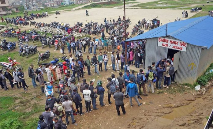 सवारी साधनमा इम्बोस्ड नम्बर प्लेट जडान गर्ने सवारी धनीहरुको यातायात कार्यालय गुर्जुधारामा भिड बढेको छ ।यातायात व्यवस्था विभागले बागमती र गण्डकी प्रदेशमा दर्ता भएका सवारी साधनका धनीहरुलाई असार मसान्तभित्र इम्बोस्ड नम्बर जोडिसक्नु पर्ने र नजोडे कारबाही गर्ने चेतावनीयुक्त सूचना जारी गरेपछि यातायात कार्यालयमा भिड बढेको हो । आज बिहानदेखि गुर्जुधारामा एम्बोस्ड नम्बर दर्ता र जडान गर्नेहरुको लामो लाइन देखिएको छ ।भौतिक पूर्वाधार तथा यातायात मन्त्रालयले २२ कात्तिक २०७८मा राजपत्रमा सूचना प्रकाशित गरी संघीय सरकारको यातायात कार्यालयले नामाकरण भइसकेका प्रदेशहरुमा १ मंसिरदेखि नयाँ दर्ता भएका सवारी साधनमा, १ फागुनदेखि नामसारी गरिने सवारी साधनमा र १ जेठ २०७९ देखि सवारी दर्ता प्रमाणपत्र (ब्लुबुक) नवीकरण गर्दा इम्बोस्ड नम्बर अनिवार्य गरिएको जनाएको छ ।पर्याप्त तयारी नगर्ने तर राजस्व उठाउन मात्र चर्को शुल्कको इम्बोस्ड प्लेट जडानलाई अनिवार्य गर्न खोजेको भन्दै सरकारको आलोचना भइरहेको छ । यस विषयमा सामाजिक सञ्जालदेखि प्रतिनिधिसभाको बैठकसम्म सरकारको कार्यशैली र नियममाथि प्रश्न उठेको छ । सोमबार प्रतिनिधिसभा बैठकमा नेपाली कांग्रेसका महामन्त्री गगन थापाले सेवाग्राहीलाई दिइएको धम्की खारेज गर्न, महंगो र गुणस्तरहीन इम्बोस्ड प्लेट वितरणको व्यवस्थामा पुनर्विचार गर्न सरकारसँग माग गरेका थिए।यातायात व्यवस्था विभागका महानिर्देशक नमराज घिमिरे भने कार्यालय र सेवाग्राहीले इम्बोस्ड प्लेट जडान गर्न आनाकानी गरेकाले कारवाही गर्नुपर्ने अवस्था आएको बताउँछन् ।