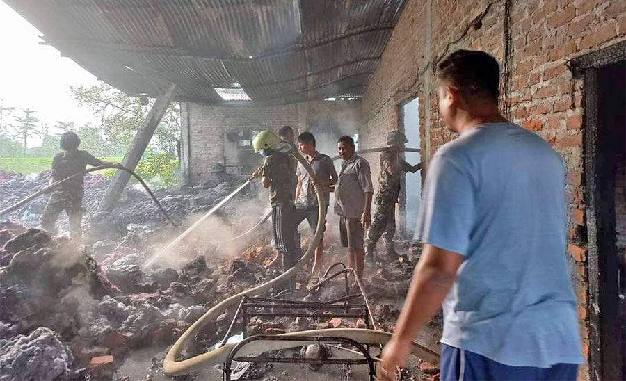 रुपन्देहीको सैनामैनास्थित एक कपास उद्योगमा आगलागी भएको छ ।सैनामैना नगरपालिका–६ कलौनी पुरानो बजारमा रहेको शिव भवानी कपास उद्योगमा शुक्रबार बिहान आगलागी भएको हो ।आगोलाई सैनामैना नगरपालिका र बुटवल उपमहानगरपालिकाका ३ वटा दमकल, प्रहरी, सेना, जनप्रतिनिधि, नगर प्रहरी र स्थानीयले ३ घण्टापछि नियन्त्रणमा लिएका छन् ।आगलागीबाट उद्योगको भवन, कच्चा पदार्थ लगायत जलेर नष्ट हुँदा ८६ लाख रुपैयाँ बराबरको क्षति भएको अनुमान गरिएको रुपन्देही प्रहरी प्रवक्ता डीएसपी नवरत्न पौडेलले जानकारी दिए ।