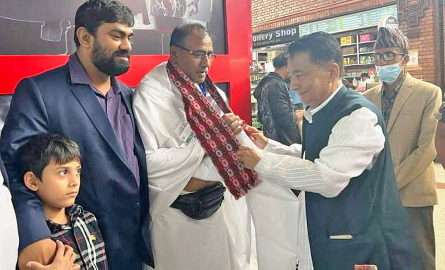 सञ्चार तथा सूचना प्रविधिमन्त्री ज्ञानेन्द्रबहादुर कार्कीले मुस्लिम धर्मावलम्बीको पवित्र तीर्थस्थल मक्का मदिनामा हज गर्न जाने १०९ हजयात्रीलाई बिदाइ गरेका छन् । उनले आज बिहान हजयात्रीलाई त्रिभुवन अन्तर्राष्ट्रिय विमानस्थलमा बिदाइ गरेका हुन् ।मन्त्री कार्कीले सुनसरी हरिनगर गाउँपालिकाका अध्यक्ष गफार अन्सारीसहितका हजयात्रीलाई दोसल्ला ओढाएर बिदाइ गरेका हुन् । हजयात्राका लागि पहिलो दिन सुनसरीबाट ७९, मोरङबाट २४, झापाबाट तीन, प्रतिनिधि दुई र चिकित्सक एक जना त्यसतर्फ निस्केका हुन् ।हजयात्री साउदी अरबको जेद्दा अन्तर्राष्ट्रिय विमानस्थल हुँदै मक्कामदिना पुग्ने नेपाल हज समितिले जनाएको छ ।बर्सेनि एक हजार २०० जनालाई हज यात्राका लागि व्यवस्थापन गर्ने भएकामा कोभिड–१९ को प्रभावका कारण यस वर्ष ५४८ जनाको कोटा निर्धारण गरिएको समितिका सदस्य सचिव कृष्ण पौडेलले जानकारी दिए । मङ्गलबारदेखि पाँच दिनसम्म क्रमशः सबै हजयात्री मक्कामदिना प्रस्थान गरिसक्ने समितिले जनाएको छ ।