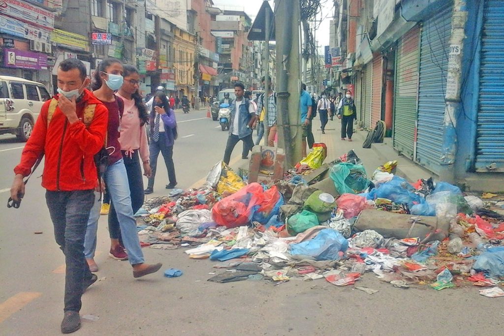 काठमाडौँ महानगरपालिकाले राजधानीको पुतलीसडक क्षेत्रको फोहोर उठाउन जिम्मा दिएको कम्पनीले नै सडकमा फोहोर थुपारेको छ ।काठमाडौँ महानगरपालिकाबाट पुतलीसडक क्षेत्रको फोहोर उठाउने सम्झौता गरेको ‘स्वच्छ वातावरण स्वस्थ मानवजीवन’ नामक कम्पनीले नै पैदलमार्गमा फोहोर थुपारेको हो ।गाडाबाट पैदलमार्ग फोहोर थुपारिरहेको अवस्थामा भेटिएका कम्पनीका कामदार उद्धव मैनाली भने गाडी आउन समय लाग्ने भएकाले पैदलमार्गमै फोहोर थुपार्न बाध्य भएको बताए ।फोहोरका कारण राजधानीमा हैजा फैलिए पनि व्यवस्थापनमा सरोकार भएका निकायको ध्यान जान सकेको छैन । राजधानीको मुख्य सडकको पैदलमार्गमा गाडामा ल्याएर फोहोर थुपार्दा पनि स्थानीयवासी कोही पनि चुइँक्क बोल्दैनन् । ‘बोले पनि केही नहुने भएकाले चुप लाग्न बाध्य छौँ’, उक्त क्षेत्रमा पसल सञ्चालन गर्दै आएका रामचन्द्र श्रेष्ठ बताए ।राजधानीको अन्य भागमा फोहोर उठिरहेको अवस्थामा पुतलीसडकको पैदलमार्गमा भने फोहोर व्यवस्थापनको जिम्मेवारी पाएको कम्पनीले नै फोहोर थुपार्ने गरेको उनले बताए । महानगरपालिकाले फोहोर व्यवस्थापनको जिम्मेवारी सुम्पेको कम्पनीको कामको अनुगमन नगर्दा यस्तो समस्या आएको स्थानीयवासीको गुनासो छ ।महानगरपालिकाले कुहिने र नकुहिने फोहोर वर्गीकरण गरेर व्यवस्थापन गर्न सार्वजनिक सूचना जारी गरे पनि पुतलीसडक क्षेत्रमा भने दुवैथरी फोहोर एकै ठाउँमा राखेर फालेको देखिन्छ ।महानगरपालिकाले सूचना जारी गरेपनि अनुगमन गरेर फोहोर वर्गीकरण नगर्नेलाई कानुनी कारबाहीको प्रक्रियामा नल्याएका कारण यस्तो समस्या देखिएको हो ।