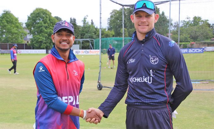 विश्वकप क्रिकेट लिग टू मा नेपालले शनिबार नामिबियाविरुद्ध पहिले बलिङ गर्ने भएको छ । स्कटल्याण्डमा भइरहेको खेलमा नामिबियाले टस जितेर पहिले ब्याटिङ रोजेको हो । शनिबारको खेलमा नेपाली टिममा एउटा परिवर्तन गरिएको छ । करण केसीको ठाउँमा पवन सर्राफ पहिलो रोजाइमा खेल्दैछन् । पवनले यसअघि गत मार्चमा कीर्तिपुर मैदानमा भएको पपुवा न्युगिनीविरुद्धको खेलमा खेलेका थिए । यसअघि लिग टू क्रिकेटको पहिलो खेलमा नेपाल नामिबियासँग ४० रनले पराजित भएको थियो भने स्कटल्याण्डलाई ५ विकेटले हराएको थियो ।