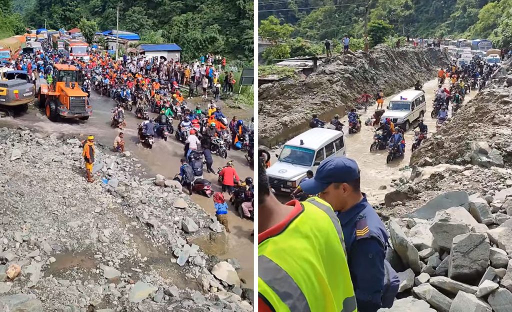 चितवनको भरतपुर महानगरपालिका–२९ केराबारीमा खसेको पहिरो पन्छाएपछि दुईतर्फी नै सडक खुलेको छ । आज बिहान साढे २ बजेतिर पहिरो खसेपछि अवरुद्ध भएको नारायणगढ–मुग्लिन सडक करिब आठ घण्टापछि दुईतर्फी नै खुलेको हो । सडक डिभिजन कार्यालय चितवनका इन्जिनियर सागर कार्कीले पहिरो पन्छाएपछि दुईतर्फी नै सडक खुलेको जानकारी दिए । धेरै तछाडमछाड गरेर गाडी चलाउँदा फेरि जाम हुन सक्ने भएकाले लेन अनुशासन पालना गरिदिन ट्राफिक प्रहरीले आग्रह गरेको छ । वर्षाका कारण नारायणगढ–मुग्लिन सडक अवरुद्ध भएको २३ घण्टापछि गएराति ९ बजेतिर बाटो खुलाइएको थियो । तर आज बिहान साढे २ बजेतिर फेरि पहिरो गएपछि बाटो अवरुद्ध भएको थियो । लामो समय जाममा पर्दा यात्रुहरु मर्कामा परेका छन् । खासगरी बालबालिका, ज्येष्ठ नागरिक र विरामीहरु समस्यामा छन् ।