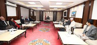 सत्तारुढ पाँचदलीय गठबन्धनको बैठक यही श्रावण २० गते शुक्रबार बोलाइएको छ । प्रतिनिधिसभा र प्रदेशसभा निर्वाचनको मिति घोषणा गर्ने तयारी सरकारले गरिरहेको बेला बुधबार अपरान्ह बसेको सत्तारुढ दलहरुको शिर्ष तहको बैठकले यही श्रावण २० शुक्रबार गठबन्धनको बैठक बोलाउने निर्णय गरेको हो । गठबन्धनलाई निरन्तरता दिने सहमतीसहित सत्तारुढ दलहरुको बैठक आगामी शुक्रबार बिहान साँढे नौं बस्ने निर्णय बैठकमा गरिएको सञ्चार तथा सूचना प्रविधिमन्त्री एवम् काँग्रेस नेता ज्ञानेन्द्रबहादुर कार्कीले जानकारी दिनु भयो । सामान्यतयाः सबै विषयमा छलफल भएको छ । र, गठबन्धनलाई निरन्तरता दिएर अगाडि बढने कुरामा सहमती भएको छ । शुक्रबार साँढे नौं बजे फेरी यो गठबन्धनको बैठक बस्छ । र, त्यो बैठकपछि म तपाईहरुलाई आफैं खवर दिनेछु ।