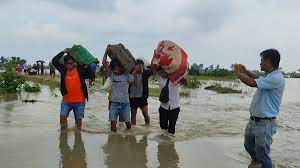 सप्तकोशी नदीको बाँध फुटेर बस्तीमा पसेसँगै डुबानमा परेको बस्तीका बासिन्दाहरु प्रभावित भएका छन् । सप्कोशी नदीको बाँध फुटेर बस्तीमा पसेको उदयपुरको बेलका नगरपालिका १,२,३,८ र ९ नम्बर वडाको क्षेत्रमा बाढी पसेको हो । सुनसरीको बराहक्षेत्र नगरपालिका–६ र ९ नम्बर वडा पनि डुबानमा परिसकेको छ । बुधवार बिहान सप्तकोशी नदीको बाँध फुटेर गाउँ पसेको थियो । जसको असर क्रमशः सप्तरी र सुनसरीमा समेत पर्ने देखिएकोले तीन जिल्लामा शतर्कता अपनाइएको छ । बस्तीमा पसेका कारण आसपासका उदयपुर, सुनसरी, सप्तरी लगायतका जिल्लाका करिव २० हजार मानिस प्रभावित हुनसक्ने आँकलन गरिएको छ । नदीको धार पुरानो ठाउँमा फर्किंदा बस्ती डुबानमा परेको स्थानीयहरुको भनाइ छ । बस्तीमा बाढी पसेसँगै स्थानीयहरु आफ्ना सामान पोको पारेर सुरक्षित स्थानतर्फ लागेका छन् । गाउँ डुबिनसकेपनि सरकारले डुब्नसक्ने जोखिमका कारण सुरक्षित स्थानमा जान आग्रह गरेको स्थानीयहरु बताउँछन् । पानीको मात्रा बढीरहेकोले वस्तुभाउ छोडेर निस्किएको स्थानीयहरुले बताए । अहिले घटनास्थलमा नेपाल प्रहरी, सशस्त्र प्रहरी र स्थानीयवासी उद्धारमा खटिएका छन् । पूर्वी नेपालमा अविरल वर्षाका कारण पानीको सतह झनै बढ्दै गएकोले जोखिम अझै बढ्नसक्ने अनुमान छ । पानीको सतह बढ्दै गए चार हजार घरपरिवार प्रभावित हुने अनुमान गरिएको छ । जोखिम क्षेत्रको रेखाङ्कन गरेर थप शतर्कता अपनाउन स्थानीयवासीलाई आग्रह गरिएको छ ।
