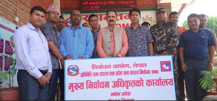 जिल्ला सदर मुकाम गाैरमा आईतबार एक कार्यक्रम बीच मुख्य निर्वाचन अधिकृतकाे कार्यालय स्थापना भएको छ । राैतहट जिल्ला अदालतका जिल्ला न्यायाधीश तथा राैतहट जिल्लाका मुख्य निर्वाचन अधिकृत मातृका प्रसाद मरासिनीले जनताले चाहेको जन प्रतिनिधि छान्ने सवालमा हामी निश्पक्ष धाधली रहित रुपले कार्य गर्ने कुरामा लागि परेका छाैं सो अवसरमा आयोजित कार्यक्रम लाई सम्बोधन गर्देे बोल्नु भयो । दलका प्रतिनिधि आचारसंहिता पालना गर्न तयार रहेको प्रतिवद्वता आएकोछ यसलाई सुखद रुपमा लिएको बताउनु भयाे। सुरक्षाको सवालमा प्रमुख जिल्ला अधिकारीबाट सुरक्षामा कमि कमजोरी हुदैन यसले निश्चित रुपमा निश्पक्ष चुनाव हुनछ भने कुरामा विश्वास व्यक्त गर्नु भयो । जुलुस भेला कोण सभा २४ घन्टा पहिले अनुमति लिनु पर्ने हुन्छन ।बाल बालिकाको प्रयोग नगर्ने । मास मिडिया प्रिन्ट मिडियामा कसरी प्रचार गर्ने निर्देशिका अनुसार गरिदिनु हुन वहाँले अनुराेध गर्नु भयाे । प्रमुख जिल्ला अधिकारी कृष्णबहादुर शाहीले अन्य जिल्लाका अनुभव सुनाउनु हुँदै सम्पन्न स्थानिय चुनावबाट राैतहटमा फरक किसिमले चुनाव हुने गरेको जिकिर गर्नु भयो । आचार संहित मुख्य राजनीतिक दलबाट तोडने खालका गतिबिधि नपुर्याउन आग्रह गर्नु भयो ।सुरक्षा निकायले कसरी भय रहित बातावरणमा कसरी चुनाव गराउने चिन्तन मन्न गर्दैछाै प्रमुख जिल्ला अधिकारी शाहीले बताउदै पछिल्लो चुनाव भन्दा बढी सहयाेग गर्न सबै राजनीतिक दलसंग अनुराेध गर्नु भयाे । जनतालाई दिएको मतलाई पुर्णरुपले सुरक्षित गरि परिणाम घाेषना हुने कुरामा विश्वत रहन प्रतिवद्वता व्यक्त गर्नु भयो ।नेकपा एकीकृत समाजवादी पार्टीका अध्यक्ष कमल राय यादवले निर्वाचन आचारसंहिता अक्षर:सह पालना गर्ने प्रतिवद्वता व्यक्त गर्देे निश्पक्ष चुनाव हुने कुरामा विश्वास व्यक्त गर्नु भयो । नेकपा एमालेका प्रतिनिधि भोला पाण्डयेले कार्यालय स्थापनाले देशमा शुभ संकेतको रुपमा लिनु हुँदै विवाद रहित चुनावको कामना गर्नु भयो । राप्रपाका जिल्ला अध्यक्ष सतेन्द्र प्रसाद सिंहले निश्पक्ष चुनाव हुने विश्वास व्यक्त गर्दै साना- ठुल्ला दल नहेरी सबैलाई आचार संहिताको पालना गराई दिन हुन अनुराेध गर्नु भयाे । नेपाल सुशासन पार्टीका जिल्ला अध्यक्ष रन्जित पटेलले स्थानिय चुनावमा जिल्लामा देखिए कमि कमजोरी नदोहरियोस भने सम्बन्धित निकायको ध्यानाकर्षण गराउनु भयो । नेपाल पत्रकार महासंघका अध्यक्ष प्रेमचन्द्र झाले स्थानीय चुनाव सुरक्षाकर्मीले देखाएको ईमान्दारीतामा शंका गर्ने ठाउ नरहेको भनुहुदै आसन्न चुनाव निश्पक्ष धांधली रहित हुने कुराम विश्वास व्यक्त गर्नु भयो ।निर्वाचन कार्यालय राैतहटका प्रमुख छोटेलाल दास,निर्