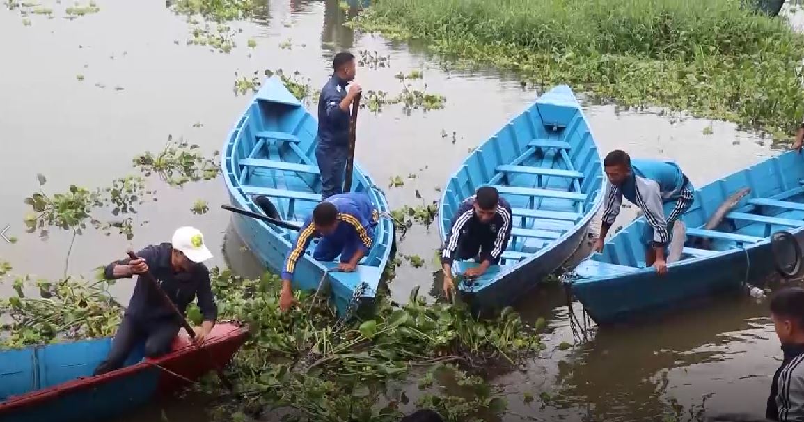सरसफाईमा सहभागी जनाएका थिए । तालको मुहानतर्फ रहेको जलकुम्भी झार असोज महिना लागेसँगै हावा चल्ने र तालभरी फैलने गर्छ । लगातारको वर्षासँगै तालको सबैजसो भागमा जलकुम्भी फैलिएको छ । जसको कारण ताल कुरुप बन्ने गरेको छ ।