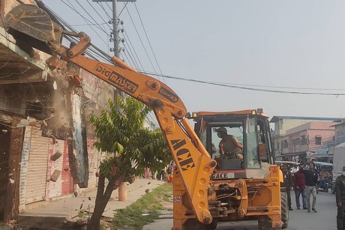 धनगढी उपमहानगरपालिकाले मुख्य सडक फराकिलो बनाउन सडक छेउछाउका संरचना हटाउन सुरु गरेको छ । हुलाकी सडक आयोजनाले जग्गाधनीको अवरोधका कारण क्याम्पस चोकदेखि ट्राफिक चौराहसम्म संरचना हटाउन नसकी त्यसै छाडेको सडकमा उपमहानगरपालिकाले बुधबार डोजर चलाएको हो । धनगढी–१ कैलालीपुलदेखि वडा नम्बर ८ को क्याम्पस चोकसम्मको करीब २३ सय मिटर सडक फराकिलो बनाउने योजनाअनुसार संरचना हटाउन थालिएको उपमहानगरपालिकाले जनाएको छ । सडकको केन्द्र भागदेखि दायाँबायाँ १५–१५ मिटर विस्तार गर्ने योजना अनुसार असोज मसान्तसम्म संरचना हटाउन गत भदौ १३ गते सार्वजनिक सूचना जारी गरेको थियो । तर व्यवसायीले दशैं, तिहार र छठ पर्व व्यापारको मुख्य समय भएकाले छठ पर्वसम्म पर्खिन आग्रह गरेका थिए । बुधबार नगरप्रमुख गोपाल हमाल र उपप्रमुख कन्दकला रानासहितका जनप्रतिधिले फिल्डमा पुगेर सरकारी स्वामित्वको सेती प्रादेशिक अस्पताल भवनमा निर्मित्त मुख्य सडकतर्फका सटरमा डोजर चलाएका छन् । उपमहानगरपालिका कार्यालयका अनुसार तत्काल रेखाङ्कन गरिएकामध्ये सरकारी स्वामित्वमा रहेका भौतिक संरचनामाथि डोजर चलाइएको हो । जग्गाधनीले आफैं खाली नगरे निजी संरचना पनि हटाइने उपमहानगरपालिकाले जनाएको छ । तर केही व्यवसायीले भने सडकको क्षेत्राधिकारभित्र पर्ने संरचना आफैंले हटाइरहेका छन् । नगर प्रमुख हमालले धनगढी शहरलाई नमुना बनाउने अभियान अन्तर्गत मुख्य सडकलाई फराकिलो बनाउन संरचना हटाइएको बताए । ‘हामीले असोज मसान्तसम्म संरचना हटाउने समय दिएका थियौं । व्यवसायी र घरबेटीको आग्रहअनुसार छठसम्म म्याद थपेका थियौं’, हमालले अनलाइनखबरसँग भने, ‘छठ सकिएकाले सडक विस्तारका लागि आजदेखि हामीले सरकारी कार्यालयबाट संरचना हटाउने काम प्रारम्भ गरेका छौँ । अब सिलसिलेबार रुपमा अघि बढ्छ ।