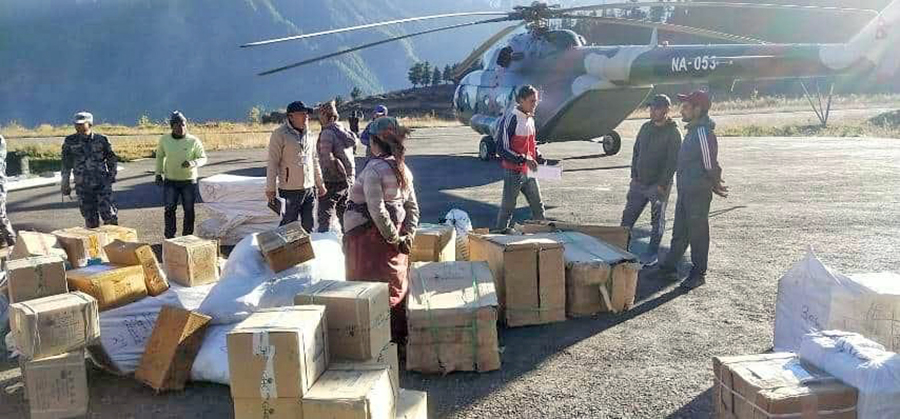 १९ कात्तिक, हुम्ला । प्रतिनिधि सभा र प्रदेश सभा सदस्य निर्वाचनका लागि हेलिकोप्टर मतपत्रबाट हुम्ला ल्याइएको छ । शुक्रबार नेपाली सेनाको हेलिकोप्टरबाट मतपत्र हुम्ला ल्याइएको हो ।