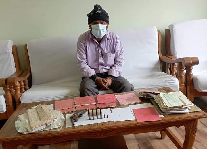 प्रहरी नायब उपरीक्षक दिपक कुमार रायको कमाण्डमा खटिएको प्रहरी टोलीले रित पुर्वक खान तलासि गर्दा कपाली तमसुकहरू, जग्गा धनि पुर्जाहरू, खाली चेक लगायतका अन्य कागजातहरू तथा कटुवा पेस्तोल १ थान .३०३ राईफलमा लाग्ने गोली ४ थान , म्यागनममा लाग्ने गोली थान १ (एक) र म्यागनमको खोका १ थान बरामद गरेका छन।