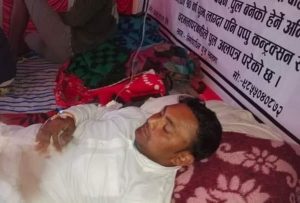 शिलान्यास भएको ९ वर्ष बितिसक्दा पनि रौतहटको गौर र इशनाथ नपा जोड्ने लालबकैया टिकुलिया पुल निर्माण नभएको भन्दै आमरण अनशनमा बसेका रौतहटका पत्रकार सन्जय सहनीको स्वास्थ्य अवस्था बुधबार बिहानै देखि निकै नाजुक बन्दै गएको छ ।